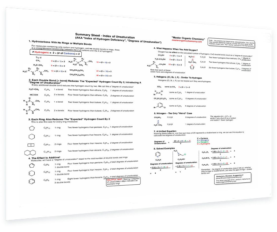 All about calculating index of unsaturation - Hydrocarbons with no rings or multiple bonds - How double bonds and rings affect the hydrogen count - The effect of oxygen - Halogens - The unified equation
