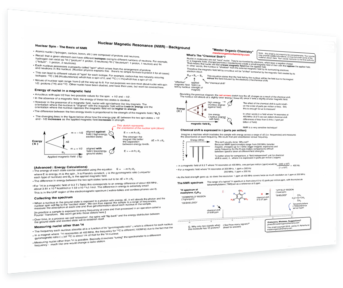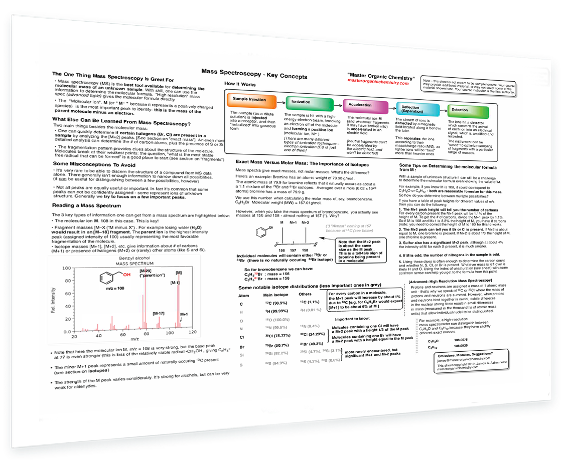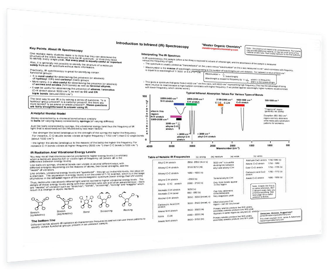 This PDF collection of spectroscopy “cheat sheets” summarizes the key information you'll need to have in order to understand and solve the most commonly encountered types of spectroscopy problems. Each sheet is packed with essential detail and organized to help you understand the key concepts.