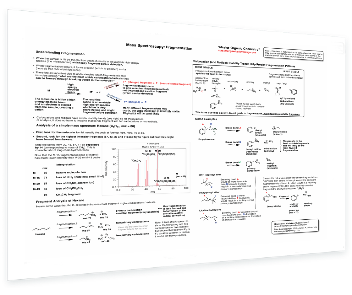 Mass spectrometry - Fragmentation - Understanding fragmentation - Fragment analysis - Carbocation stability trends - Examples