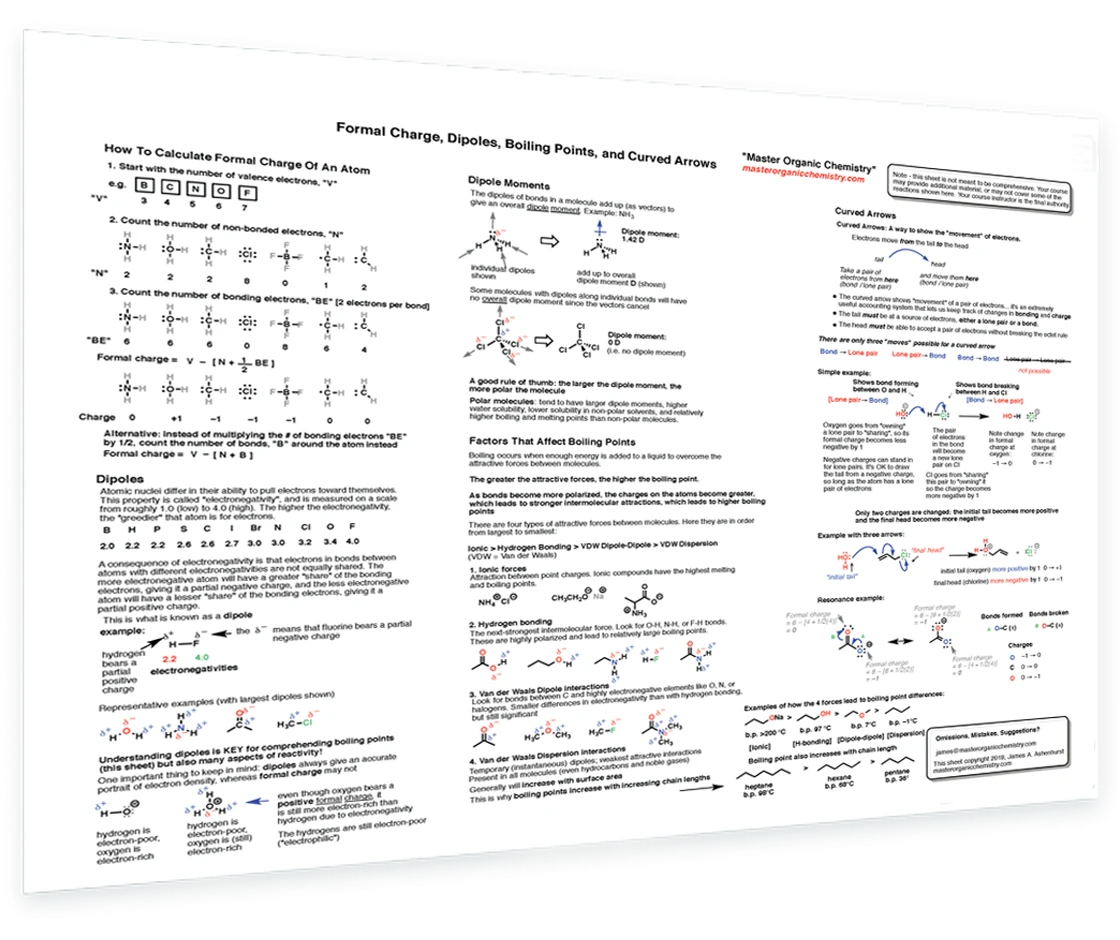 How to calculate the formal charge of an atom – Identifying dipoles – Dipoles are the key to understanding boiling points and reactivity – Dipole moments Factors that affect boiling points - –Four key forces – Ionic , hydrogen bonding, van der Waals dipole and dispersion interactions – Curved arrows and how to use them – Three legal moves for curved arrows – Examples of curved arrows