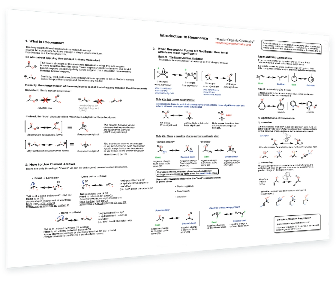 What is resonance – Resonance hybrids – How to use curved arrows to interconvert resonance forms – 5 steps to figuring out the most stable resonance form – Applying resonance to understand reactions – pi donors and pi acceptors