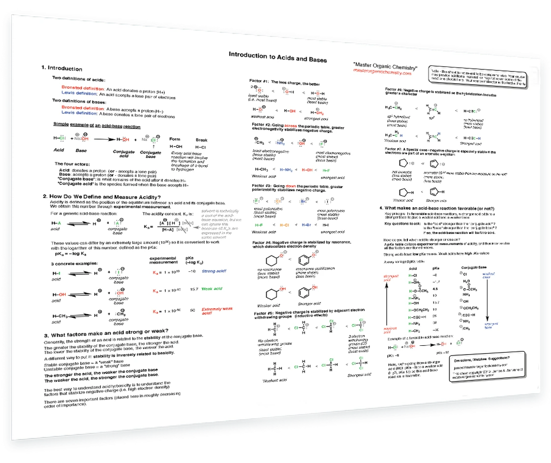Introduction to acids and bases – Bronsted and Lewis definitions of acids – Simple examples of acid base reactions - The four key actors – How to define and measure acidity – Ka and pKa – 6 key factors that affect acidity - Charge, electronegativity, polarizability, resonance, inductive effects, hybridization – How to tell if an acid base reaction will be favorable or not using pKa