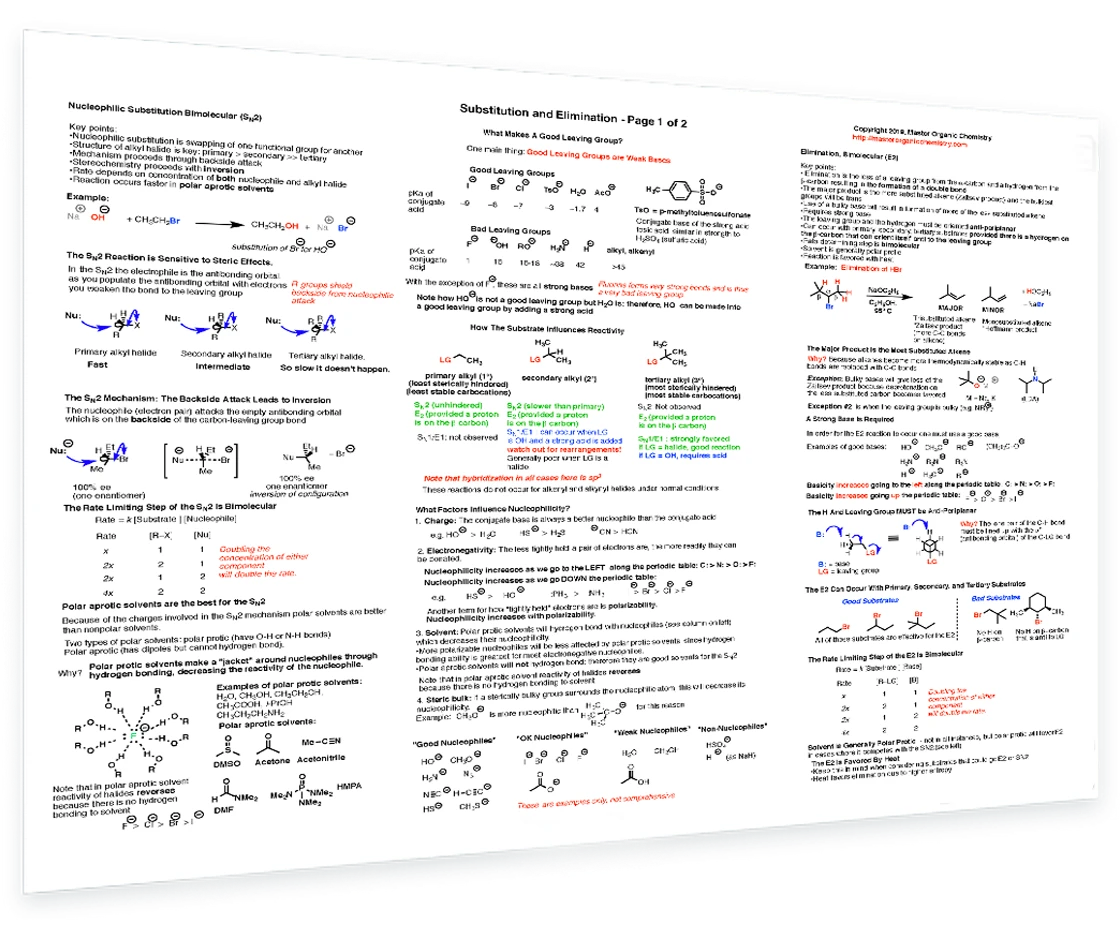 - These sheets provide a condensed summary of an entire Org 1 course, so you can access the key concepts, reactions, and mechanisms from your textbook in just a few pages.