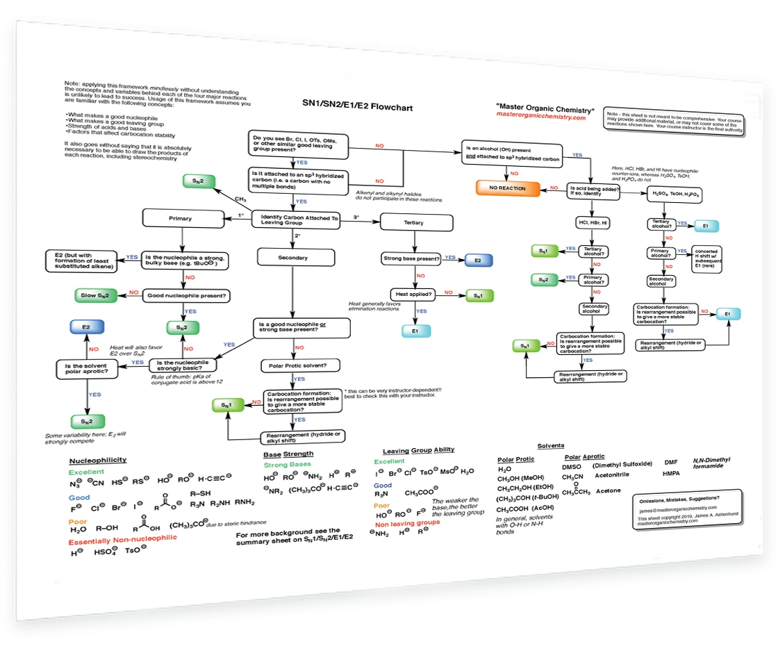 How to determine if a reaction will proceed via SN1, SN2, E1 or E2? This handy flowchart covers all the possibilities and will help you make the right decision.
