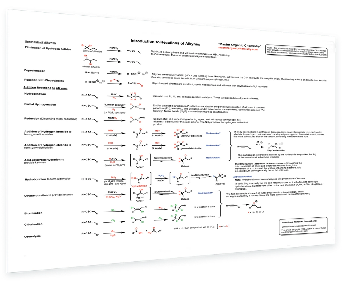 Key reactions of alkynes - the reagents, bonds formed/broken, stereochemistry, and more.