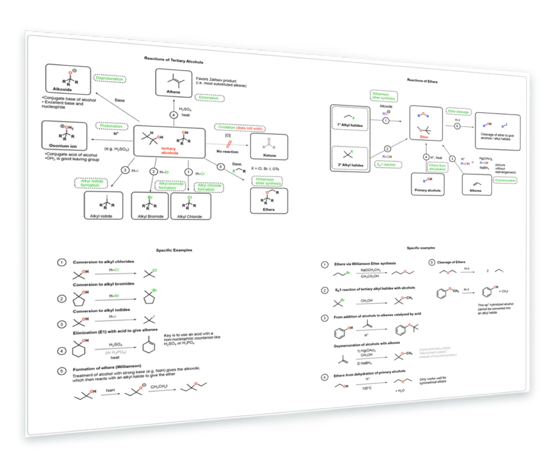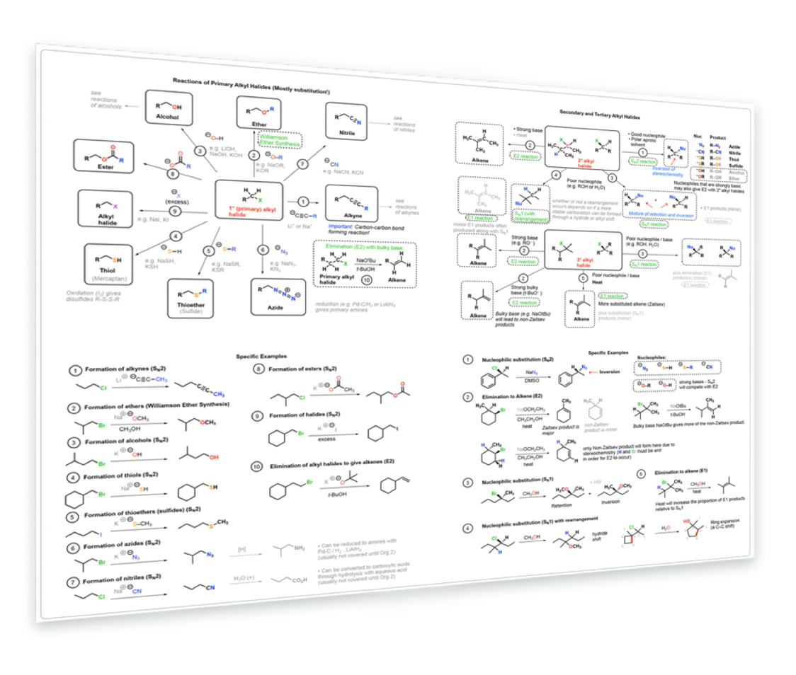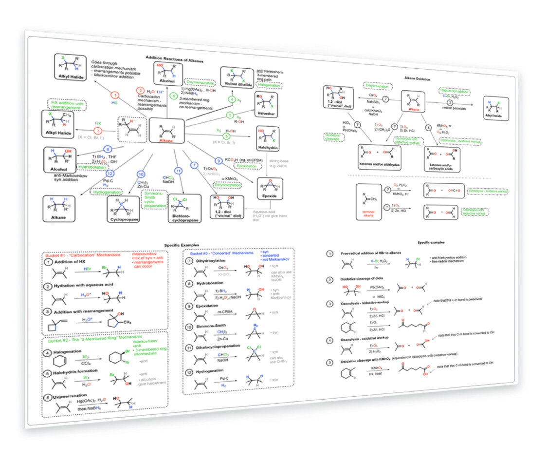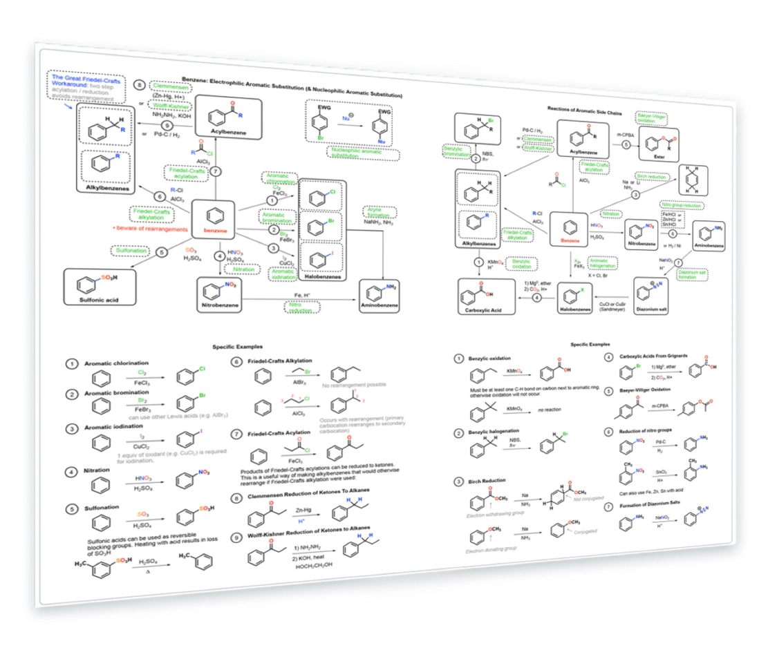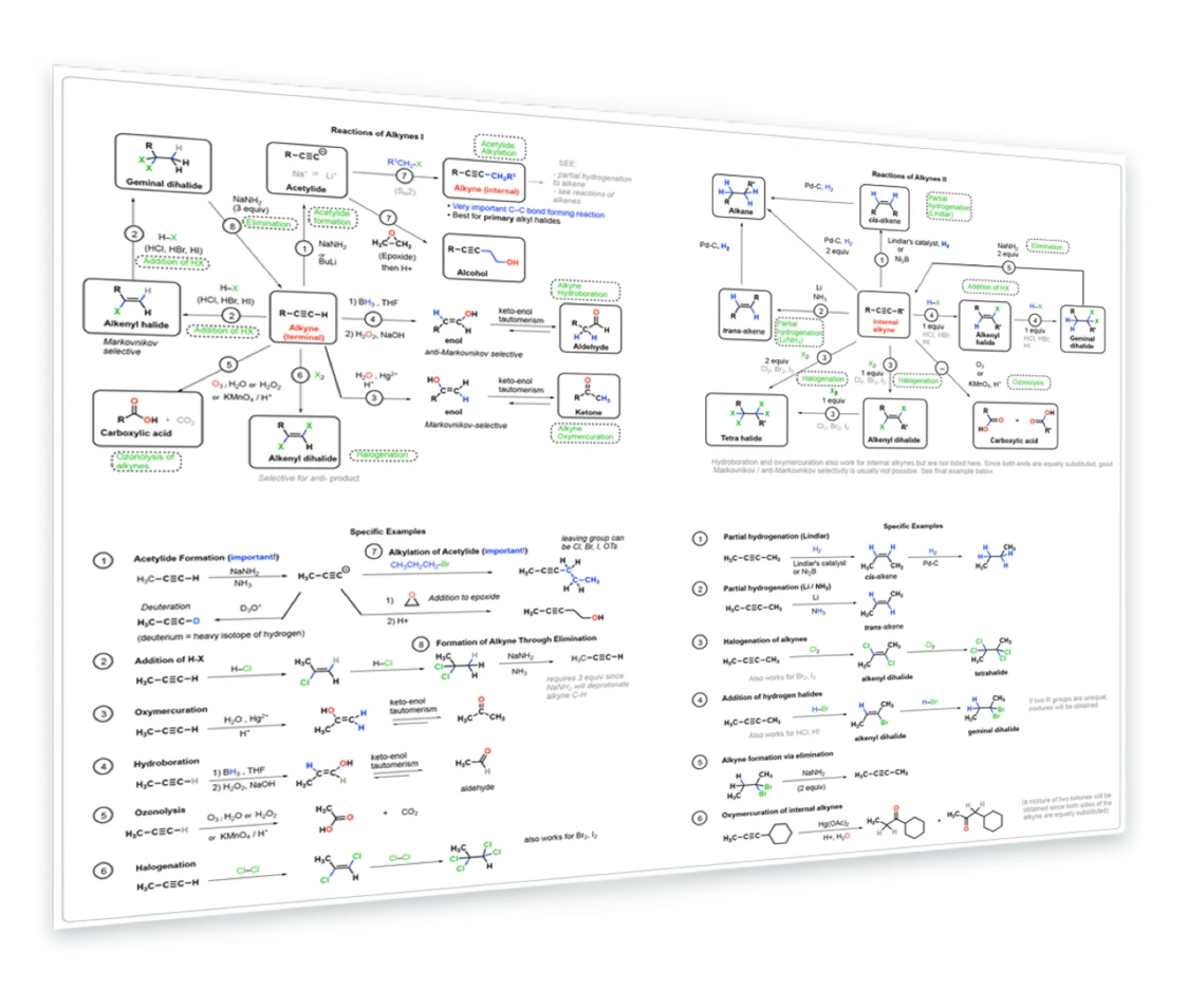 • 15-page PDF (actually 60 pages compressed 50%) with full-color diagrams showing the reactions of each functional group, along with specific examples.